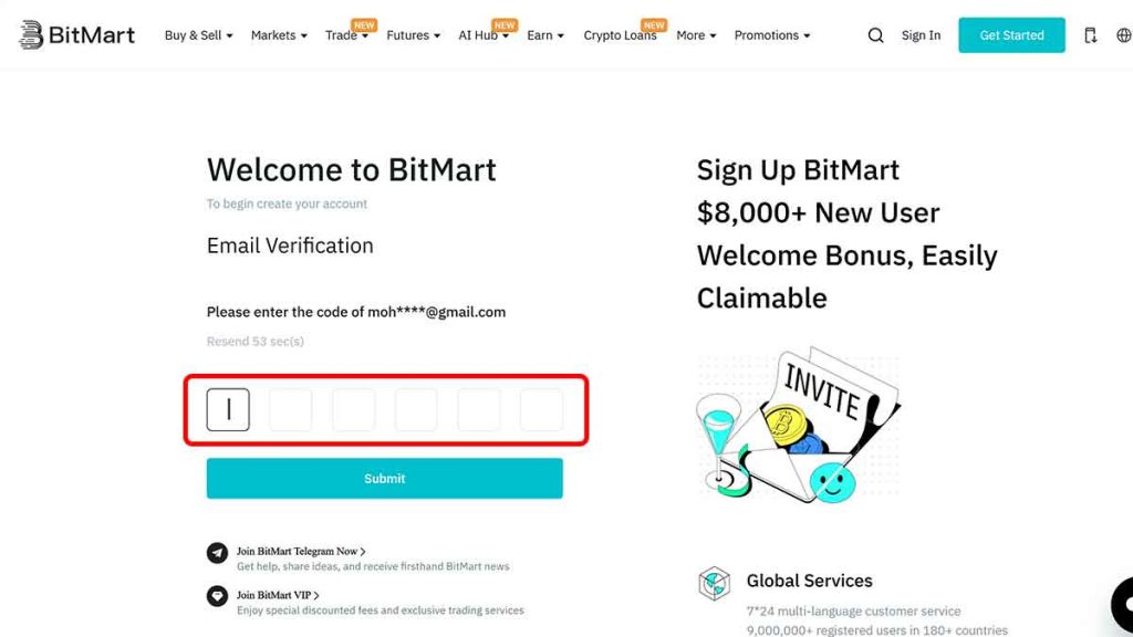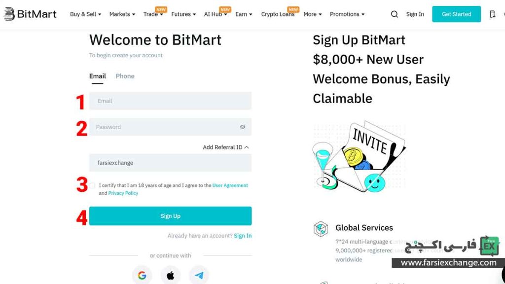 ثبت نام در صرافی بیت مارت BitMart + عکس