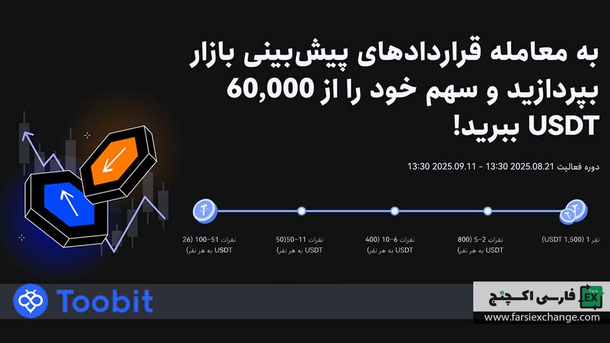 - Toobit حق تفسیر نهایی این رویداد را برای خود محفوظ میدارد. در صورت وجود هرگونه مغایرت، نسخه انگلیسی شرایط و ضوابط این رویداد ارجحیت خواهد داشت.