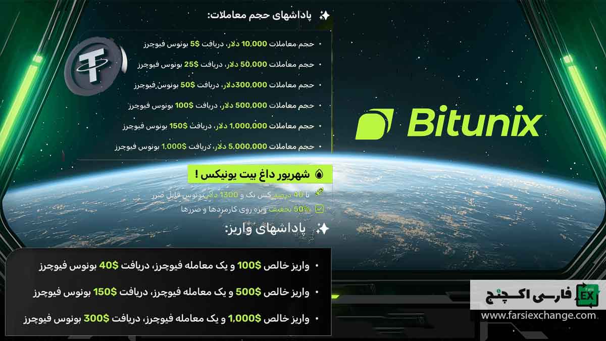پاداش ها به صورت بونوس فیوچرز می باشند که برای معاملات فیوچرز در بیت یونیکس قابل استفاده هستند.