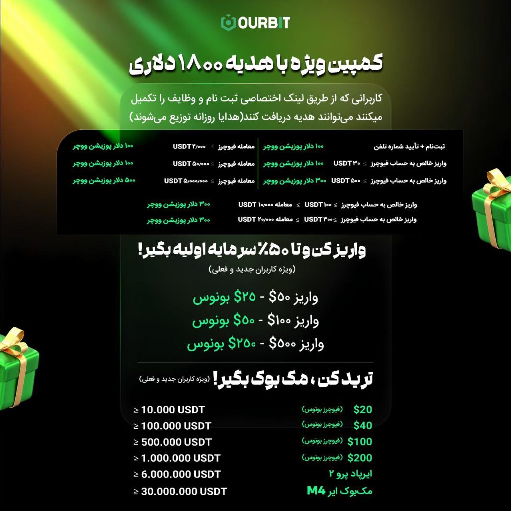 بونوس های خوش آمدگویی صرافی Ourbit برای ایرانیان