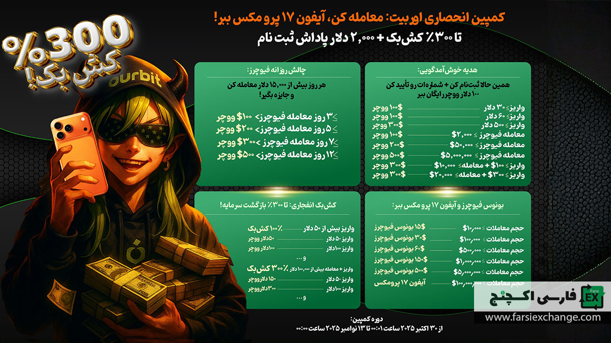 کمپین انحصاری فارسی اوربیت Ourbit | معامله کن و آیفون ۱۷ پرو مکس ببر!