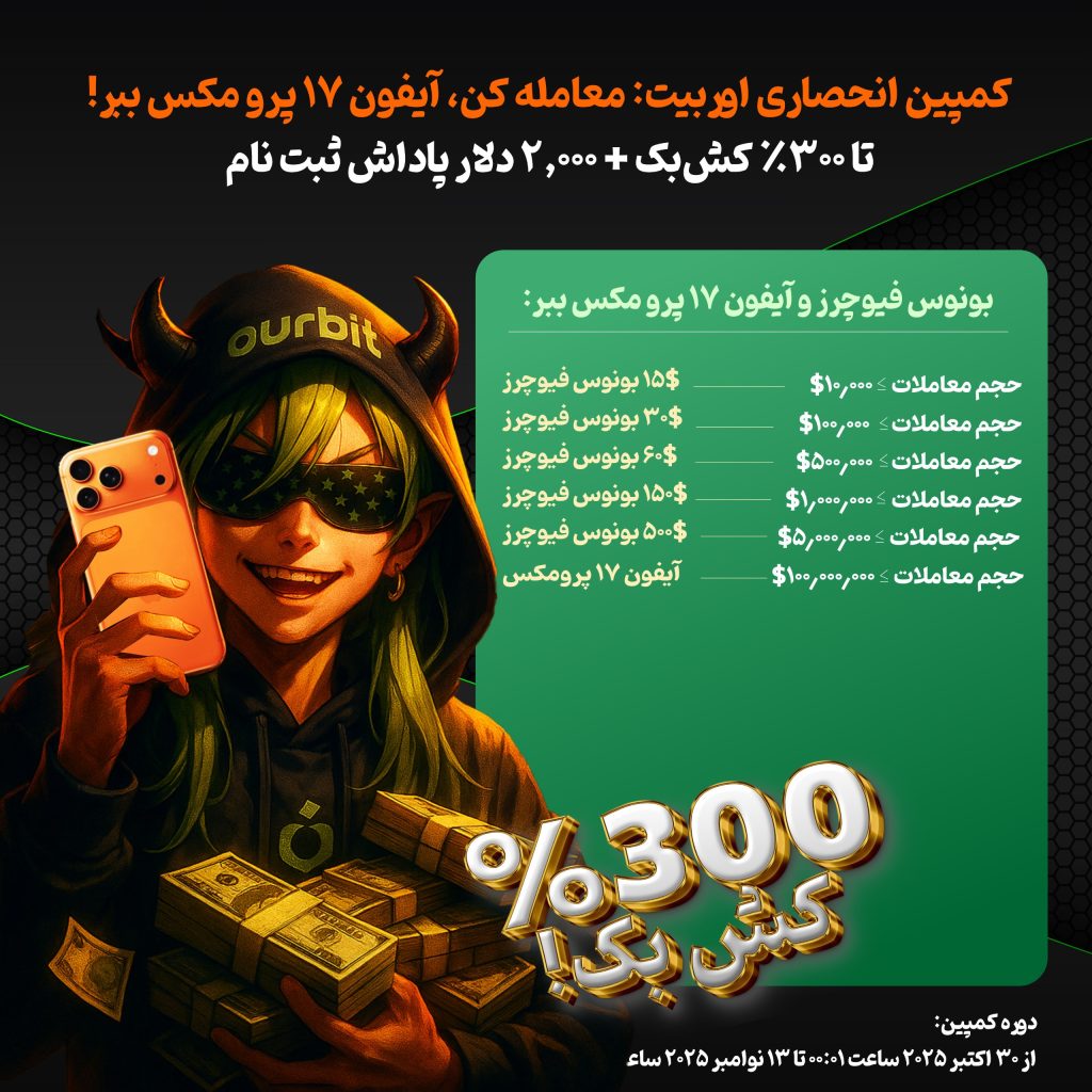 این کمپین ویژه، فرصتی طلایی برای کاربران فارسیزبان است تا ضمن تجربهی ترید حرفهای در Ourbit، از پاداشهای واقعی و حتی آیفون ۱۷ پرو مکس بهرهمند شوند.